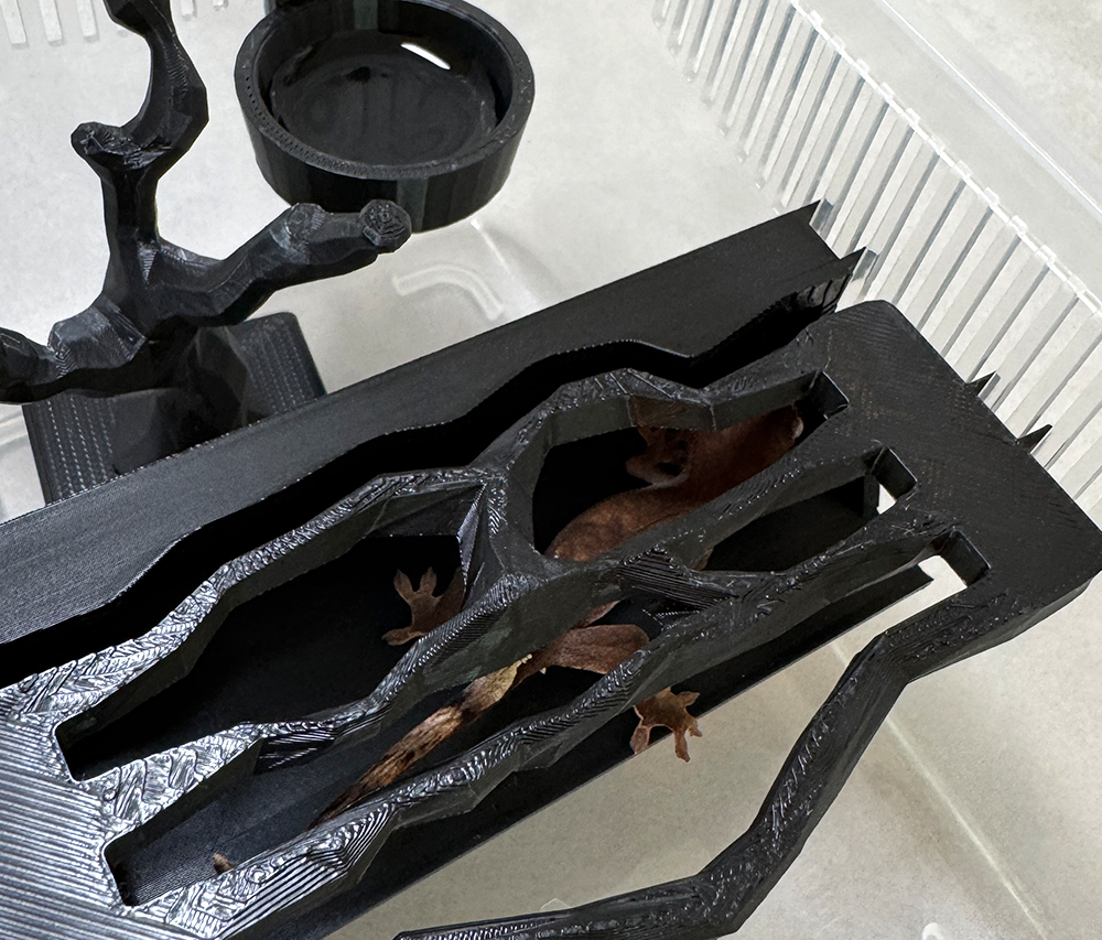 크레스티드 게코는 교목성 도마뱀이기 때문에 수직 공간을 활용할 수 있는 구조가 필요합니다.